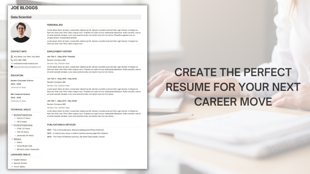 The final version can either be exported to PDF for a hard copy or displayed on your personal notion website.